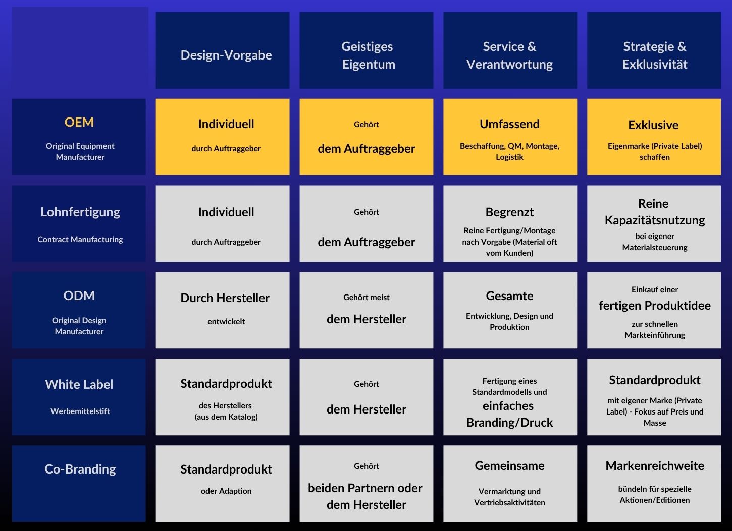 An OEM develops exclusive proprietary brands according to the customer’s custom design specifications.